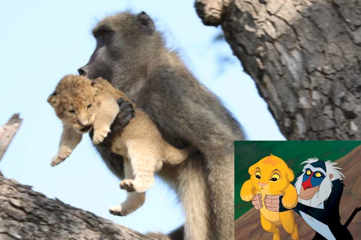 Quem nunca assistiu o “Rei Leão” e se emocionou na cena em que Rafiki, o macaco, levanta Simba em um penhasco para mostrá-lo aos outros animais do reino? Pois bem, a cena foi recriada por um macaco de verdade no Kuger National Park, na África do Sul.
