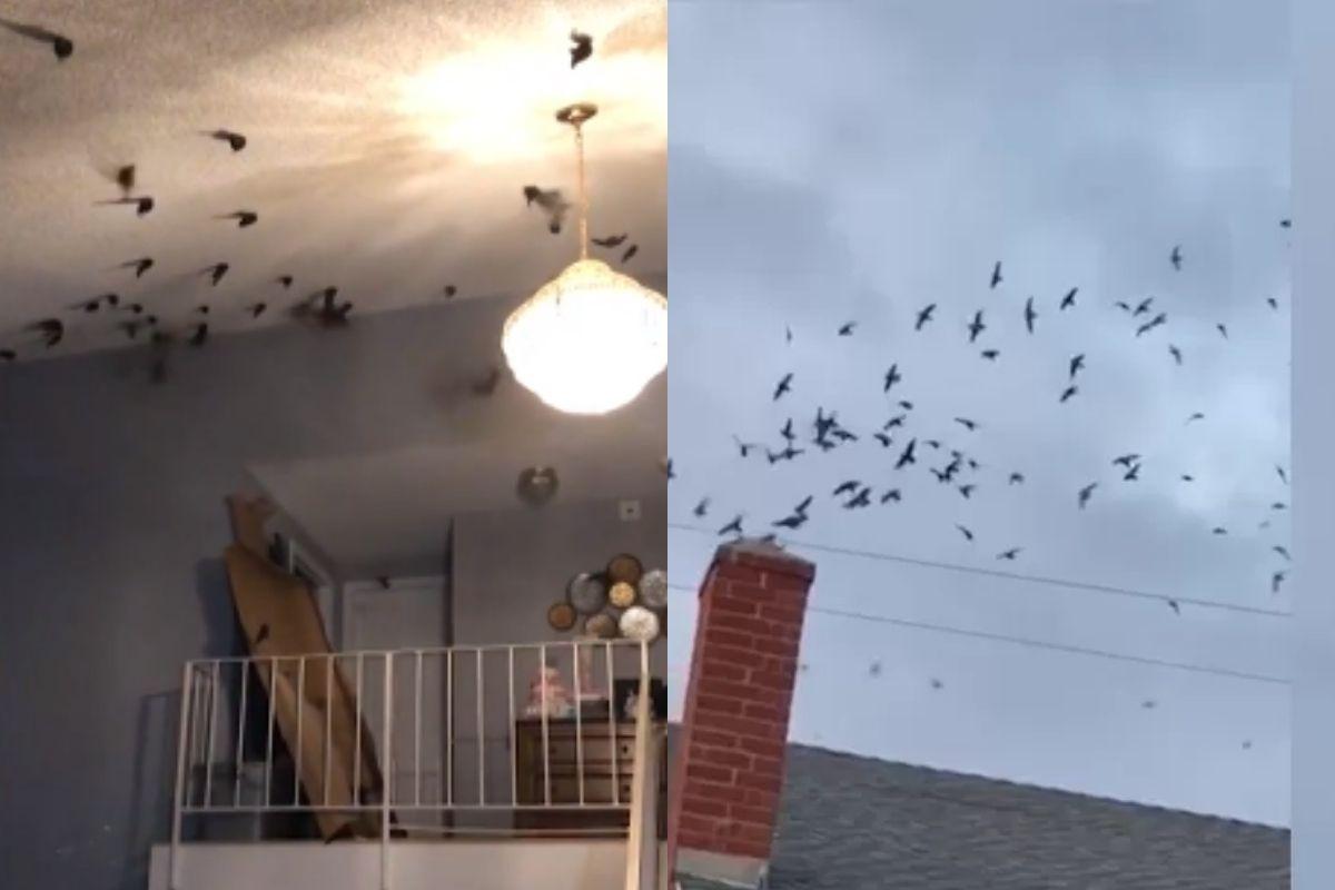 Imagina o desespero! Uma família que vive em Torrance, na Califórnia, viveu na pele o que é ter a casa invadida por mais de mil pássaros. A cena até parecia com o filme clássico “Os Pássaros”, de 1963, de Alfred Hitchcock! Os animais, que estavam migrando, acabaram entrando pela chaminé dando um susto.