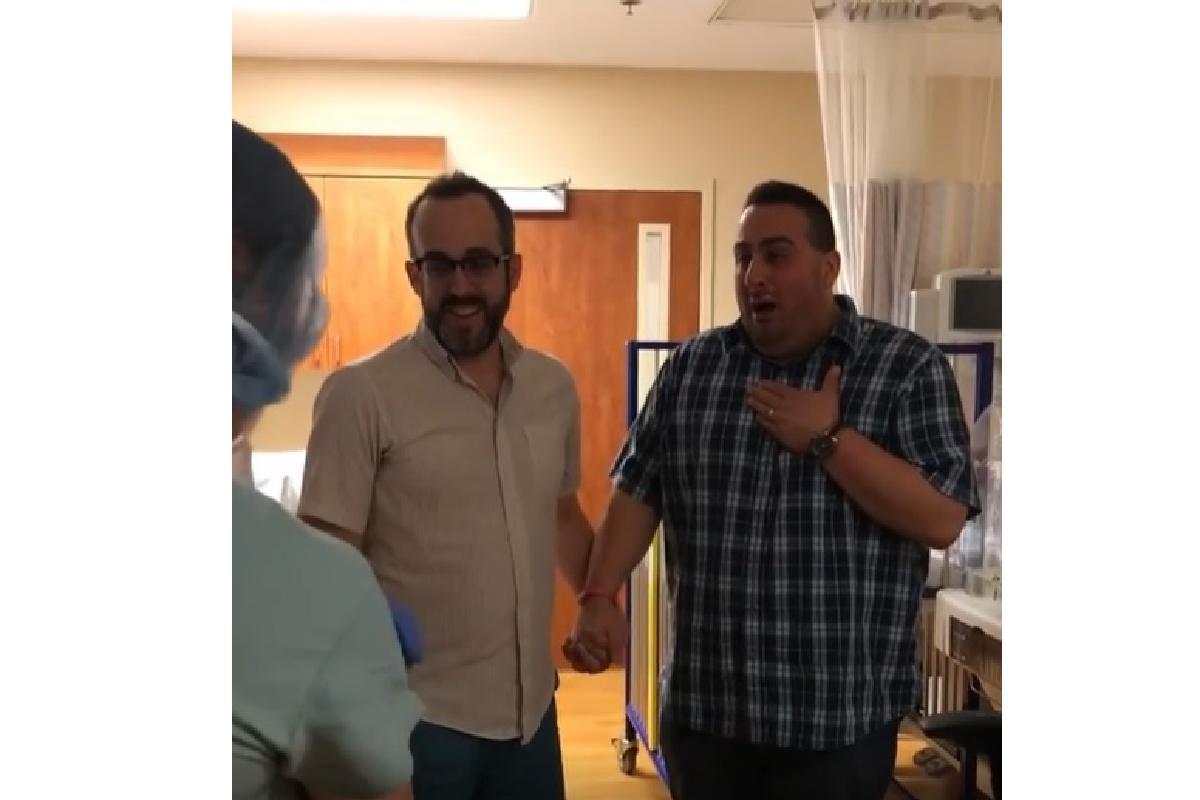 Ben Ptashinsky começa a chorar de alegria enquanto o marido Aaron pega a filha no colo. Sem parar de sorrir, os pais admiram a filha. Além deles, todos as pessoas presentes na sala aparentam estar muito feliz com a realização de mais um sonho do casal.