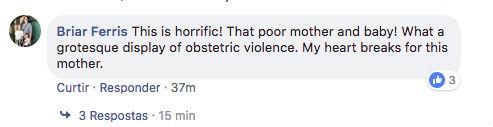 Outra mulher disse que “isso era horroroso!”. “Pobre bebê e pobre mãe! Que vídeo grotesco de violência obstétrica. Meu coração está em pedaços”, escreveu.