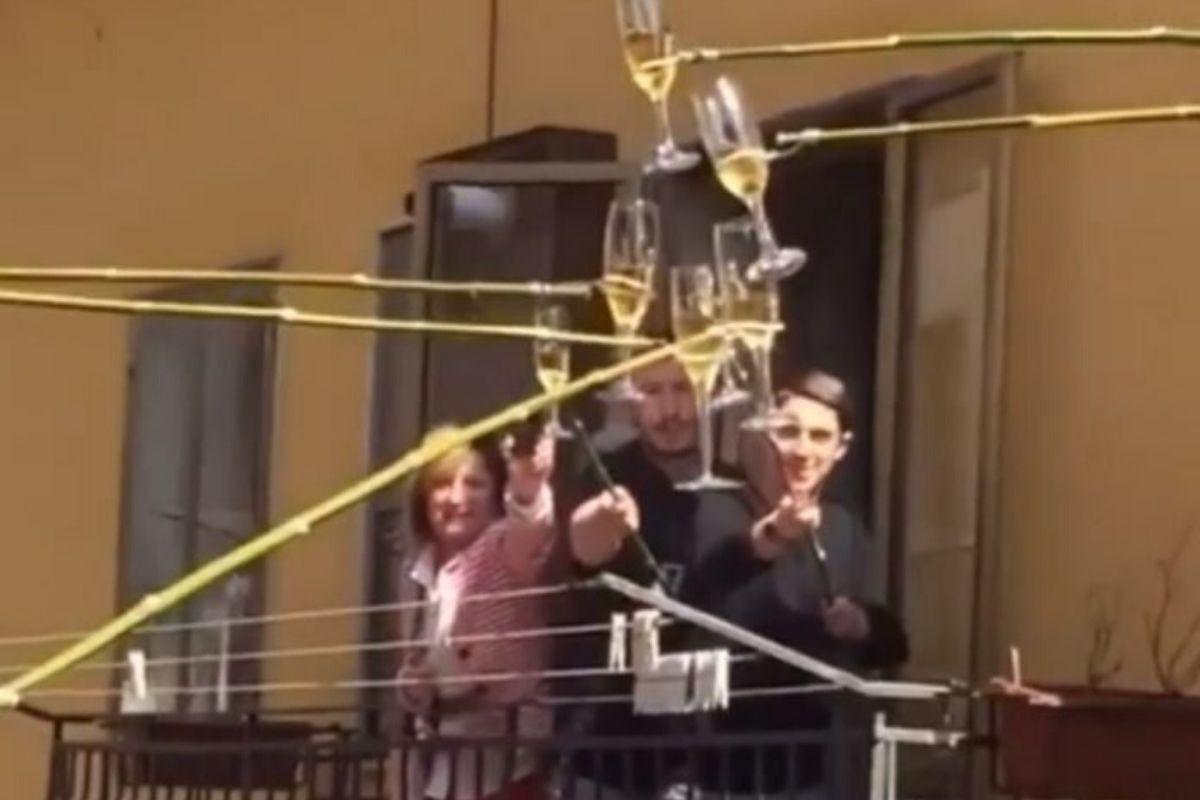 Querendo curtir e brindar à vida, esses vizinhos bolaram uma forma super criativa de comemorar sem colocar ninguém em risco. Amarrando suas taças em tocos de bambu, eles conseguiram fazer o improvável: brindaram e degustaram o vinho sem colocar ninguém em risco.
