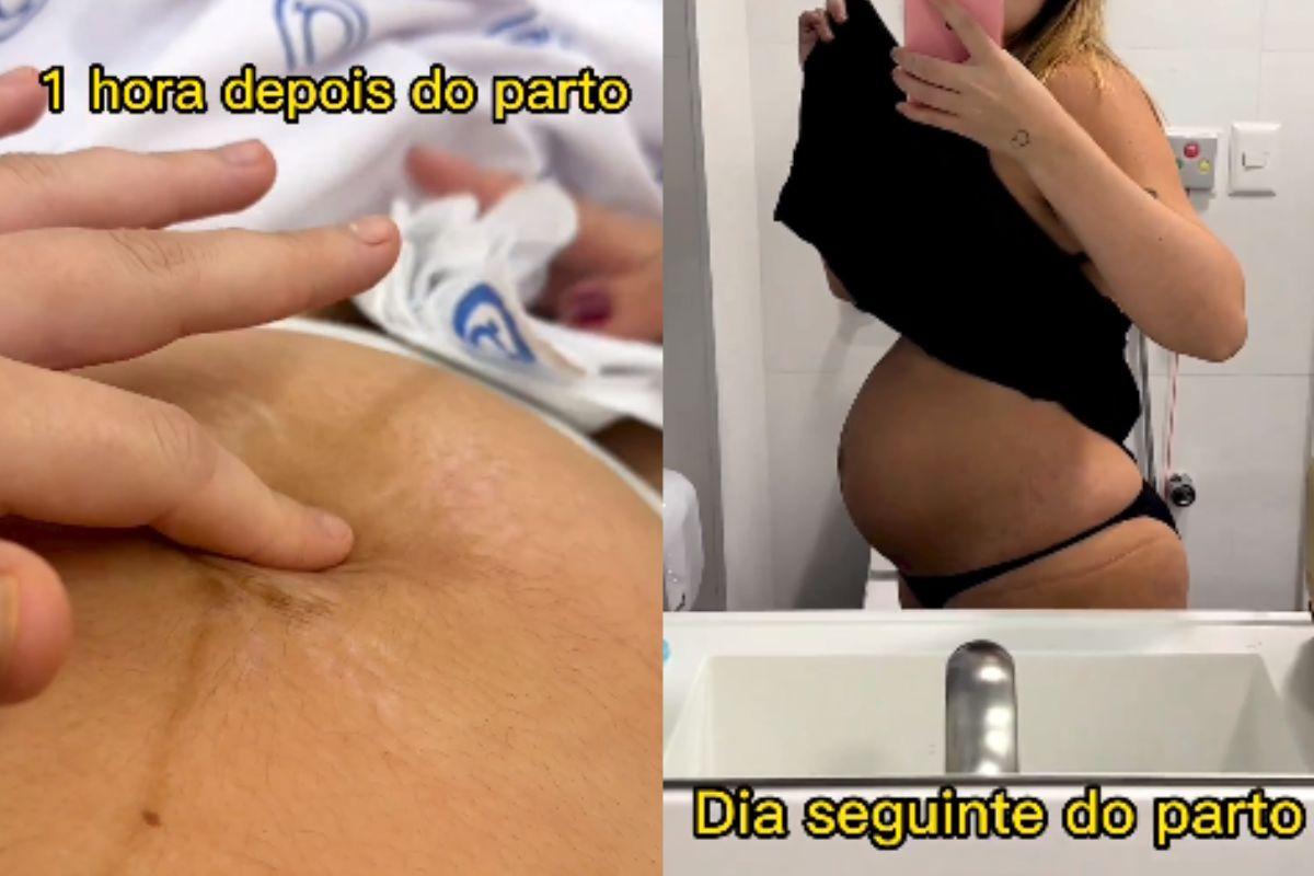 Ela mostrou desde 1 hora depois do parto até nos dias de hoje. Na legenda, ela escreveu: “Chegamos num nível de intimidade que vocês me veem de fralda. Meu corpo dia após dia no pós parto para vocês! E é isso aí, toda mamãe passa por isso, como foi com você? conta aí nos comentários”, dando assim, abertura para mães contaram sobre o pós parto.