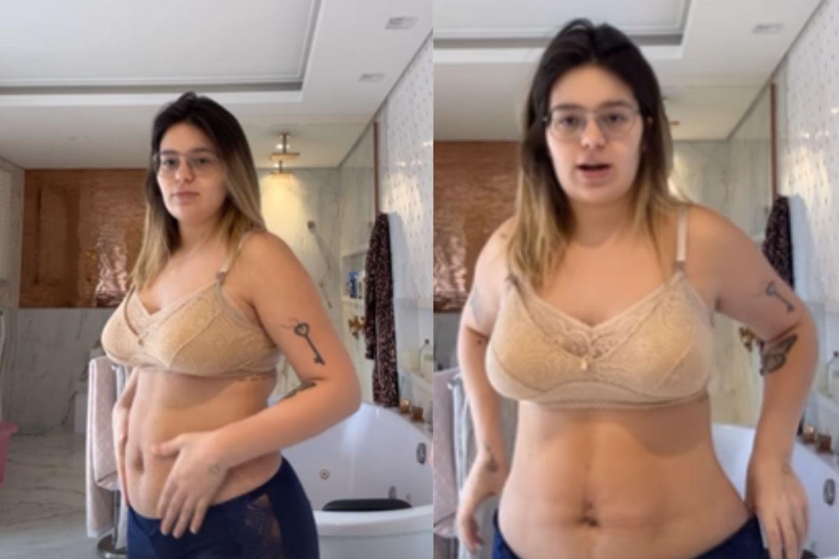 Ela disse que não vê tantas diferenças no corpo e que acha não ter mudado tanto assim. “Acho que tá bem parecido com o vídeo dos 15 dias que eu postei, acho que não mudou muito não. Acho que eu não perdi mais quilos, viu? Eu perdi 10kg e não perdi mais”, iniciou ela.