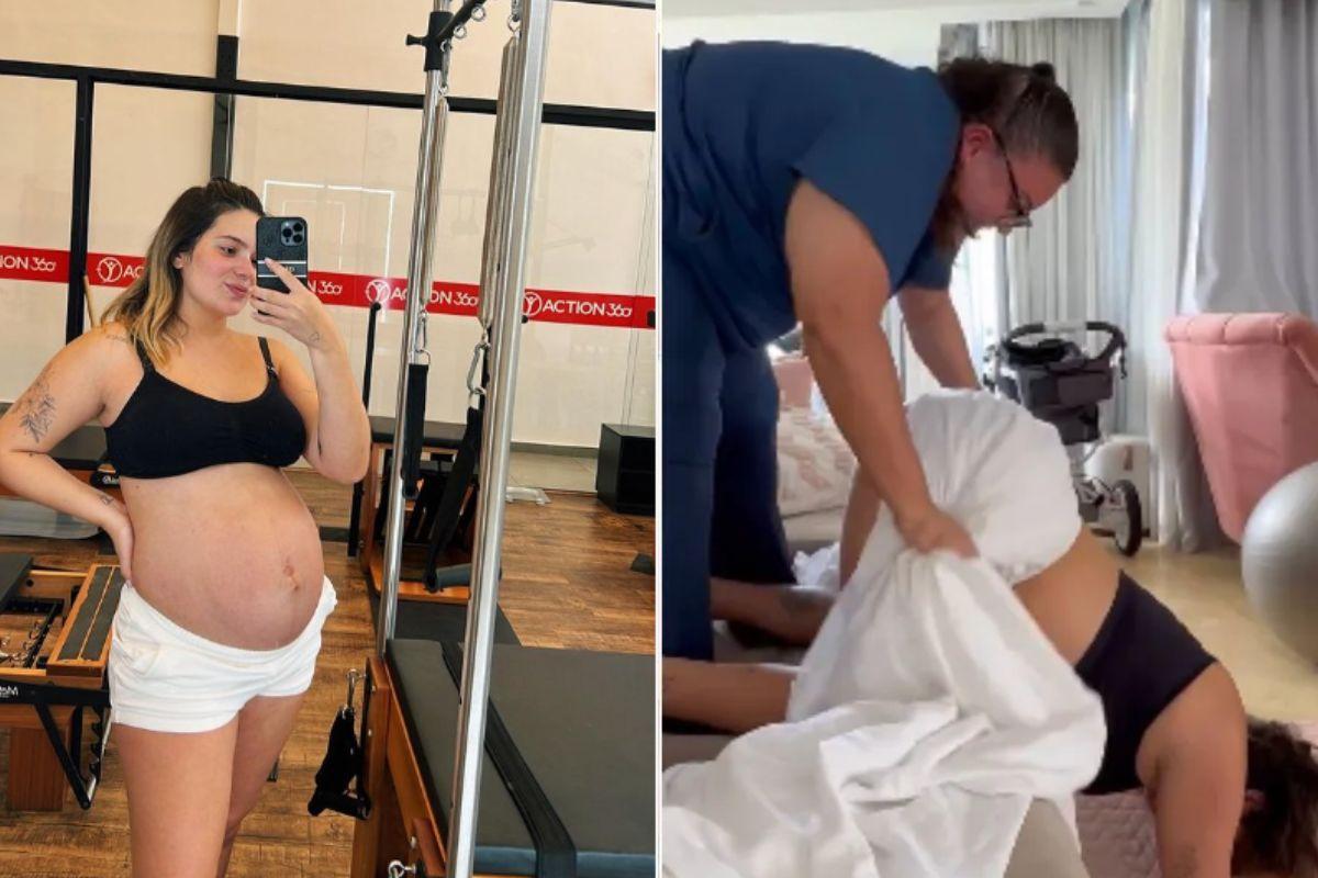 Viih Tube terá uma filha chamada Lua. No vídeo ela surge com a cabeça baixa, enquanto a doula realiza o exercício nela. A influenciadora não quis revelar de quantos meses ela está, mas tudo indica que ela já esteve na reta final da gravidez. A futura mãe anunciou a gestação em setembro de 2022 e já está com mais de 40 cm de barriga, o que indica que ela pode estar no sétimo ou oitavo mês.