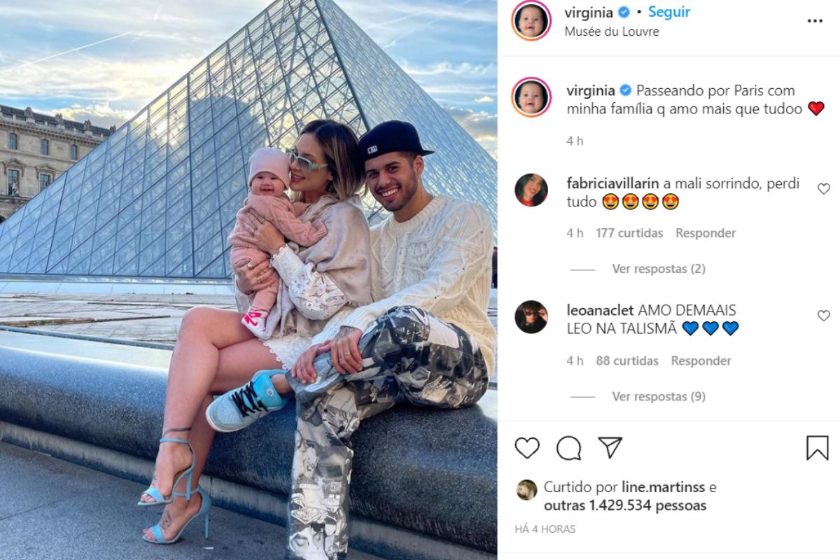 Recentemente, a influencer também publicou uma foto com a família em frente ao Museu do Louvre. A família posou juntos e sorridentes na frente do triângulo de vidro que compõe a entrada do famoso cartão postal do país: O museu do Louvre. Na legenda da publicação, Virginia escreveu: “Passeando por Paris com minha família que amo mais que tudo”. Para ver a foto completa, clique aqui.