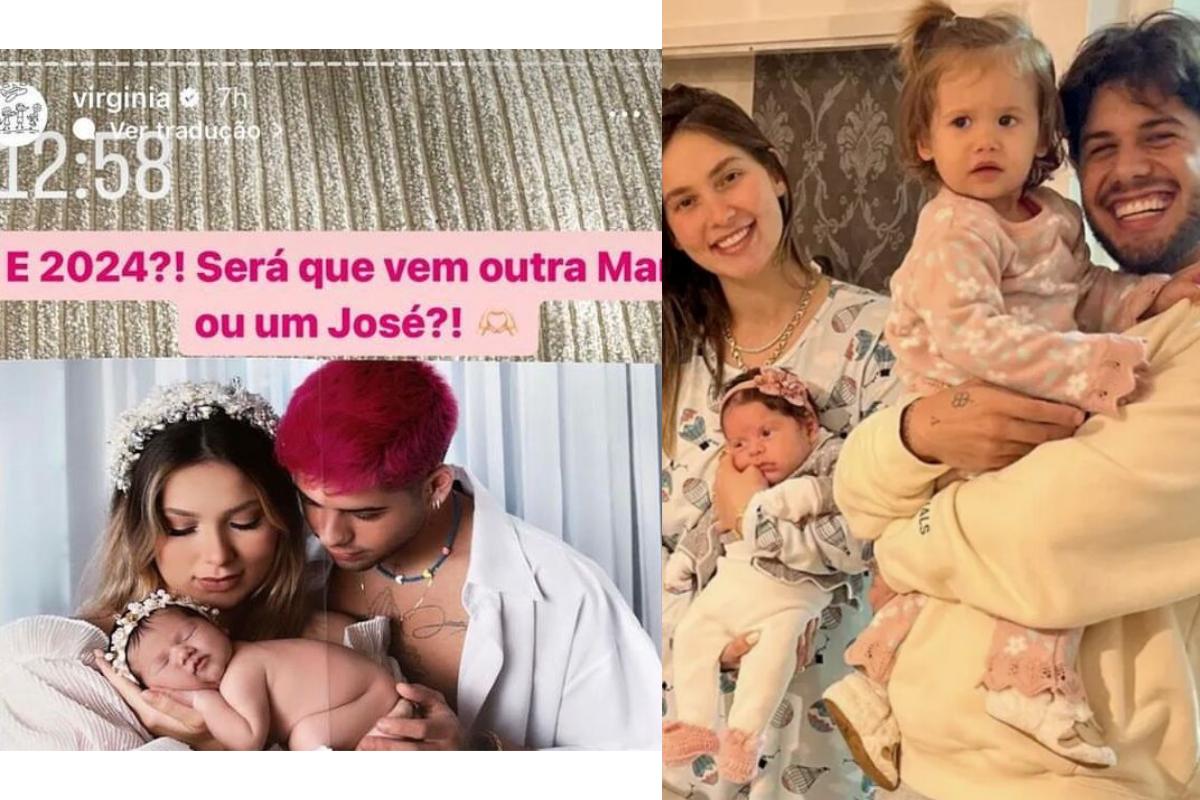 Na legenda de duas fotos de ensaios com as bebês e o pai Zé Felipe, Virginia escreveu: “E 2024? Será que vem outra Maria ou um José?”.