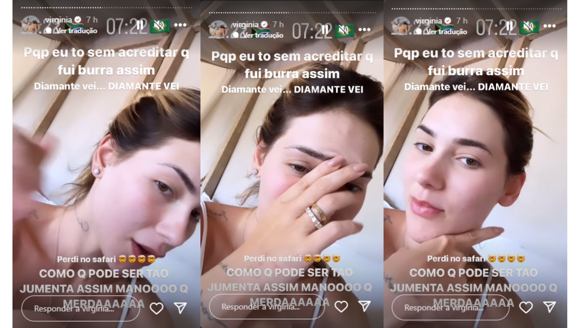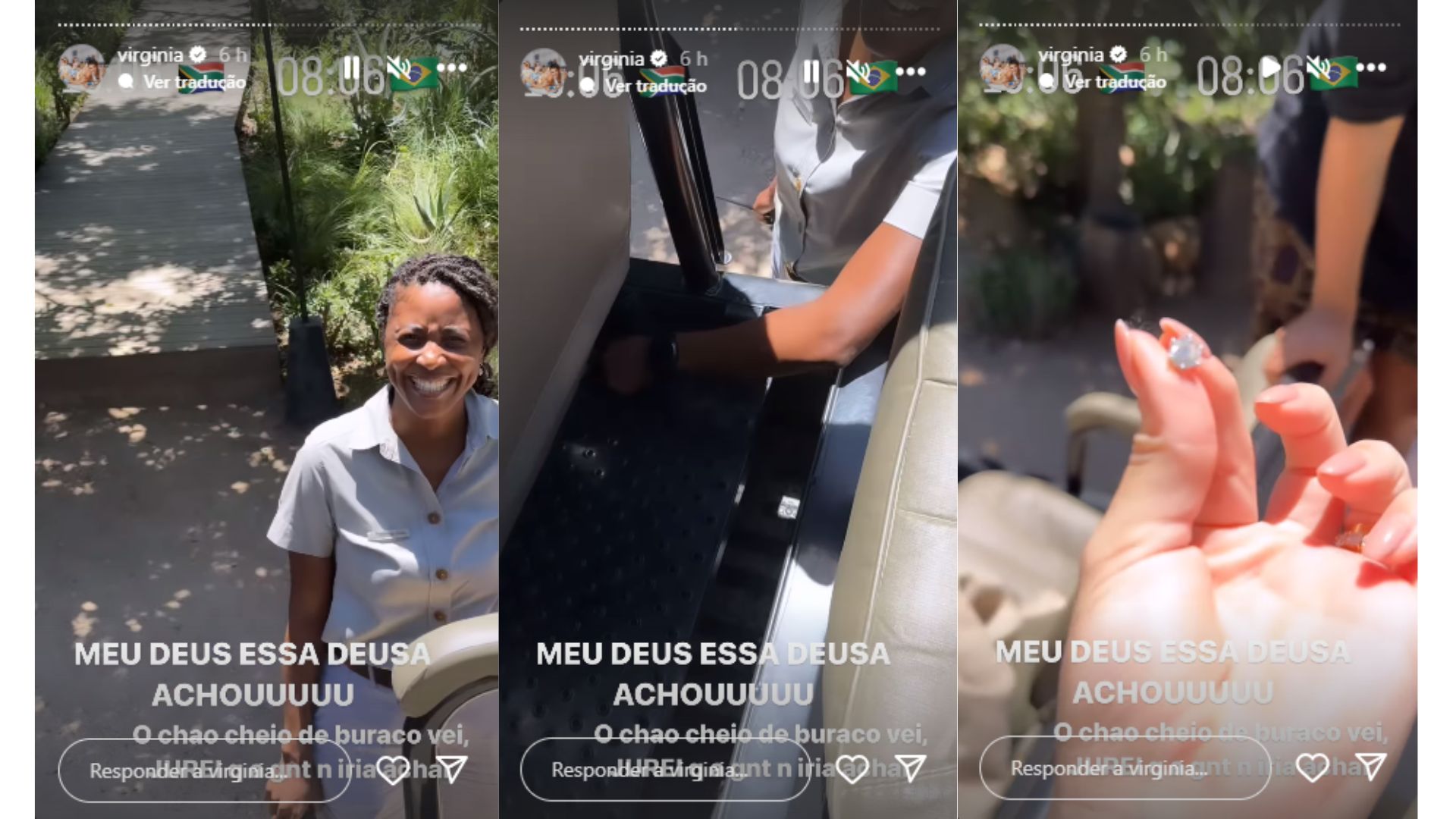Durante viagem para África do Sul, nesta quinta-feira, 25 de janeiro, Virginia compartilhou uma sequência de vídeos no stories do Instagram para contar que havia perdido um brinco de diamantes durante passeio no safári.