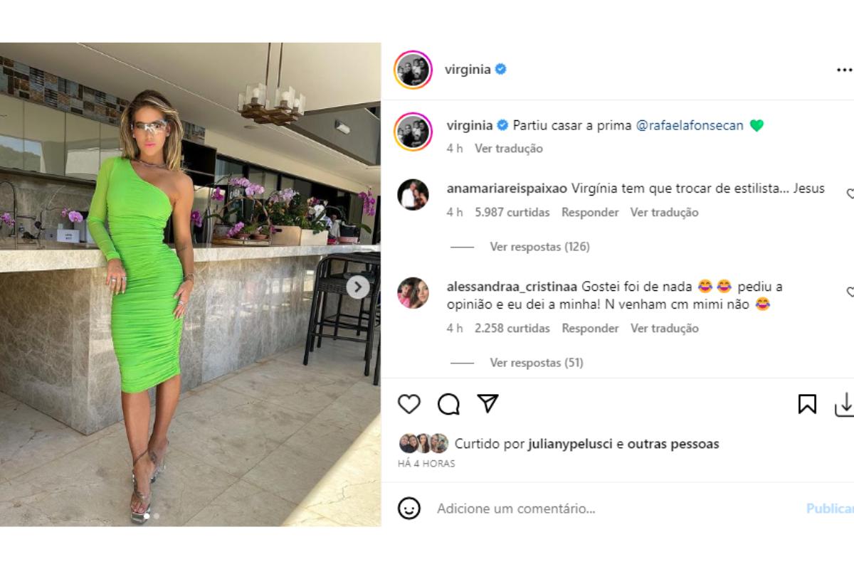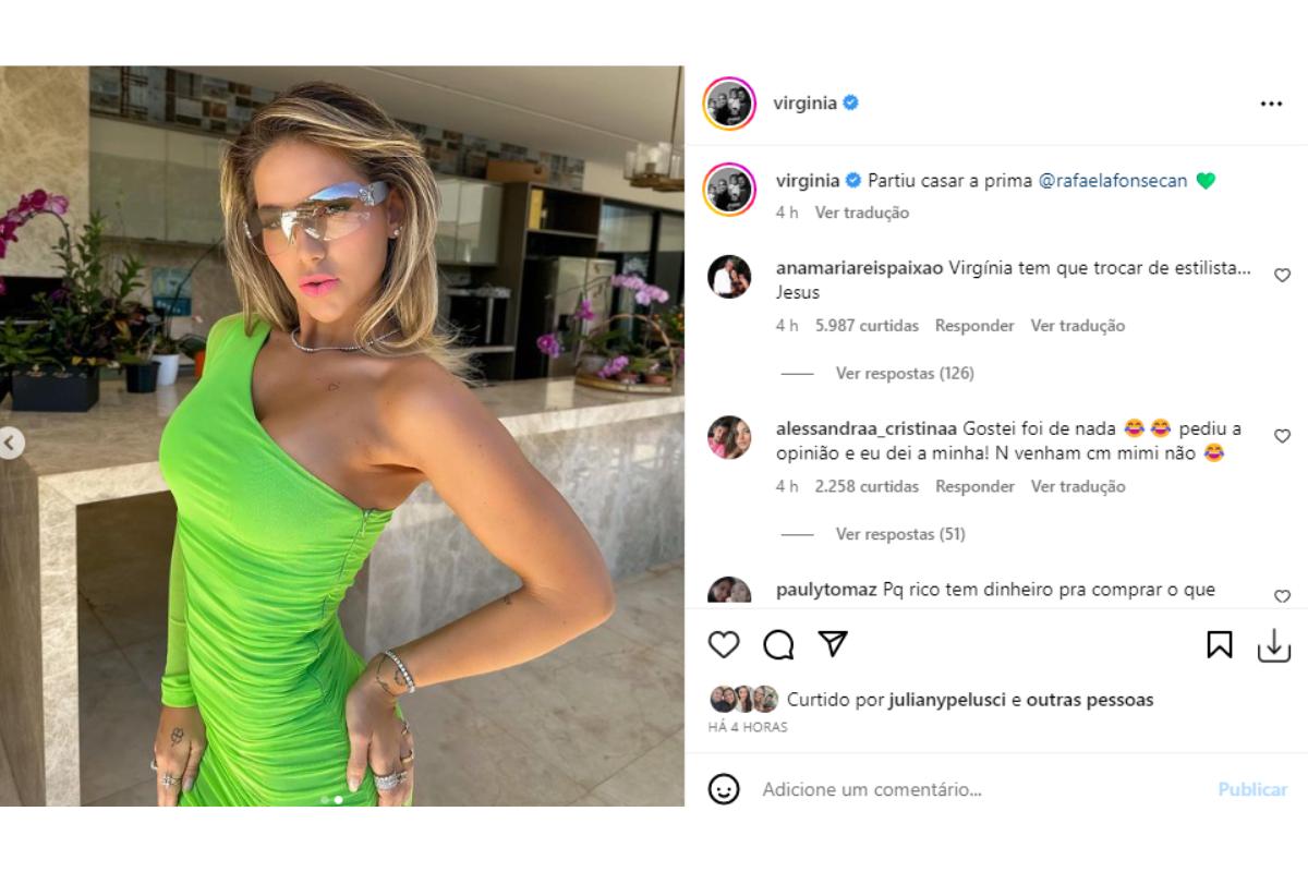 Os seguidores de Virginia criticaram a influenciadora pela escolha do look para ser madrinha de casamento (Foto: reprodução/Instagram/@virginia)