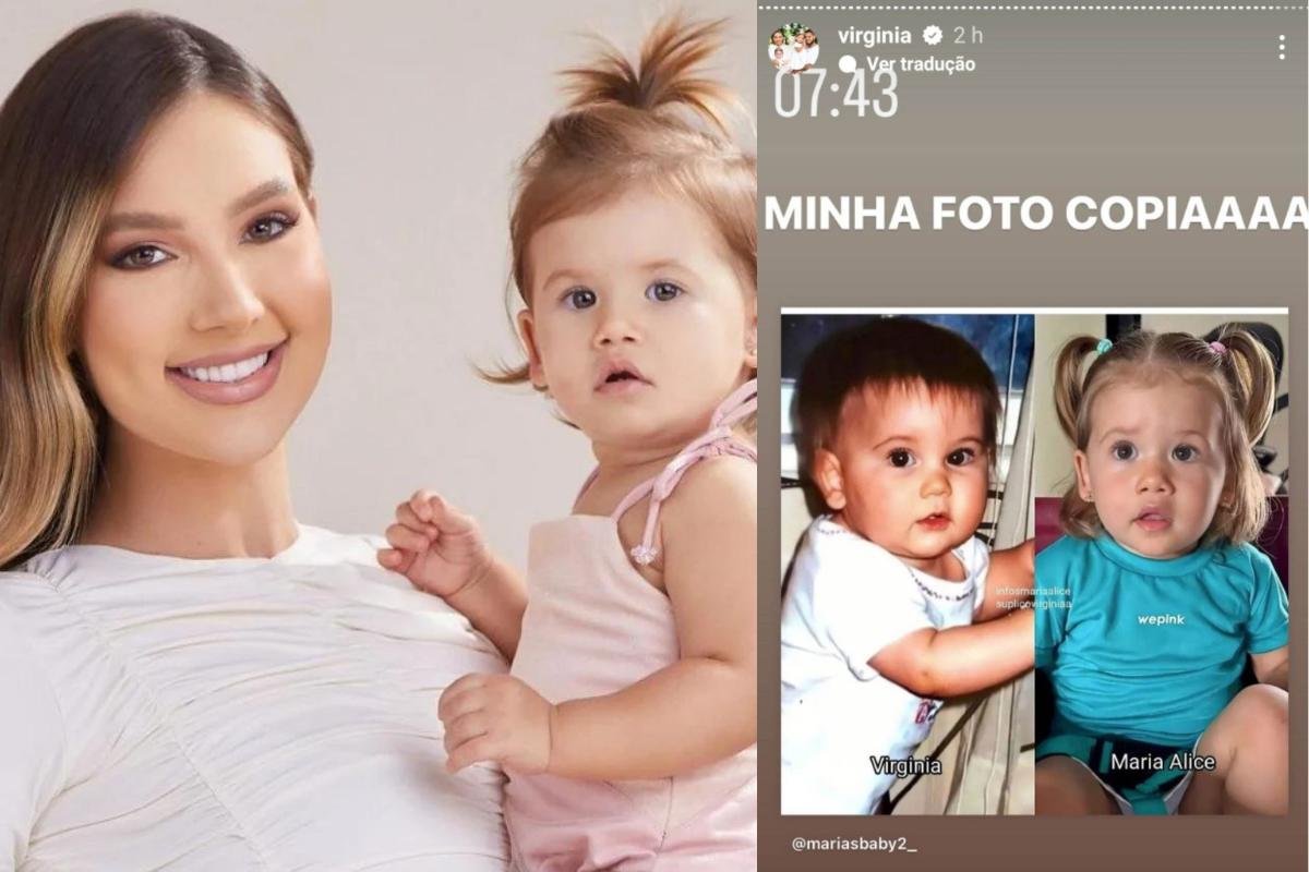 Fazendo a mesma cara pensativa, Virginia em sua versão pequena surgiu ao lado da bebê. “Minha foto cópia”, falou a artista se comparando com a menina.