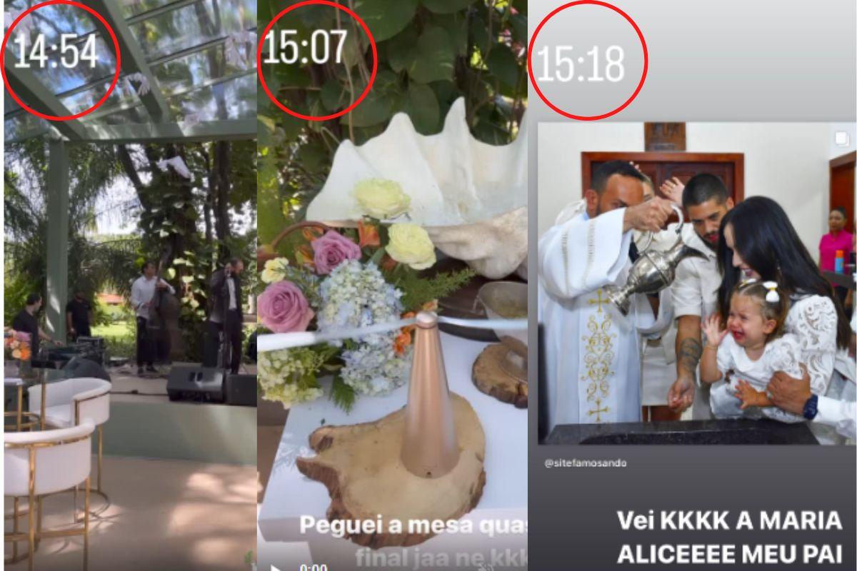 Com uma bela cerimônia e uma luxuosa e grande festa, a mãe das ‘Marias’ compartilhou todos os detalhes e momentos, principalmente da festa, nos stories do Instagram. Por lá a influenciadora costuma compartilhar diariamente a rotina dela e da família, assim como fez na festa de batismo.