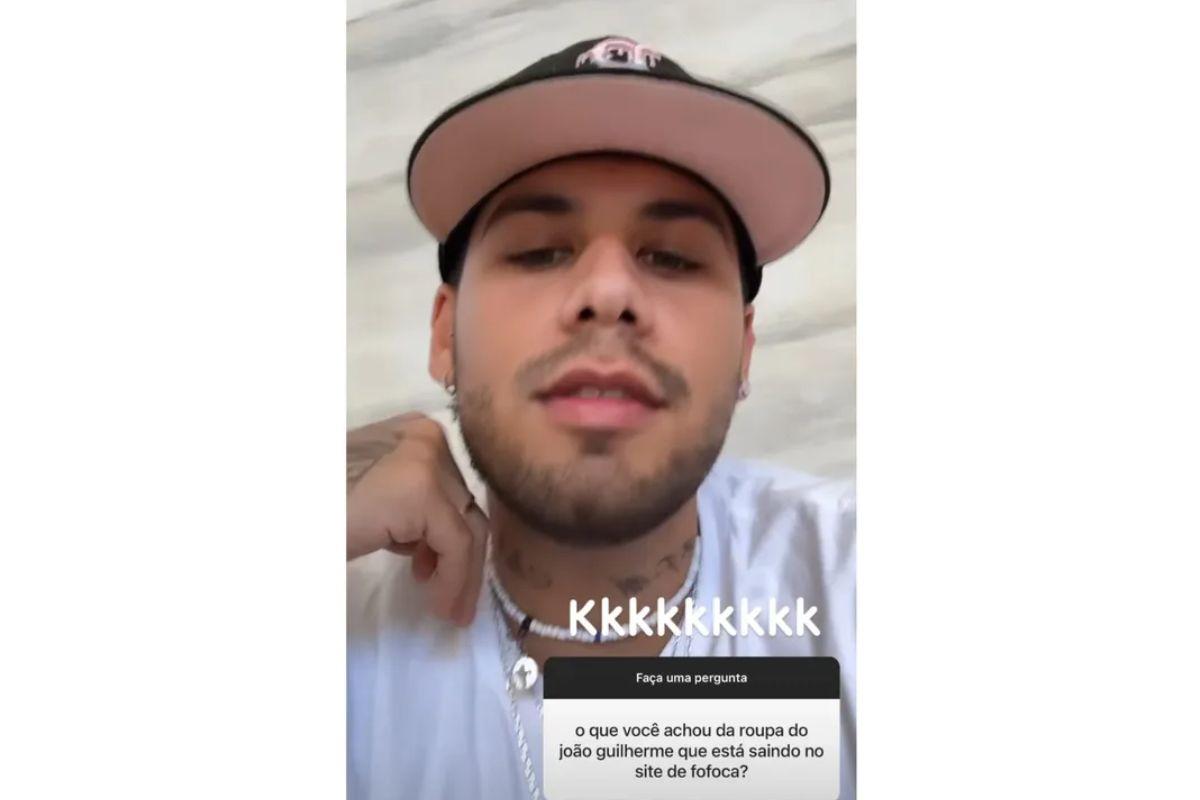 Zé Felipe comentou o que acha do irmão usar cropped, após ser questionado por um seguidor. O cantor, então, começou respondendo a pergunta de forma engraçada: “A secadora encolheu a roupa do João e ficou beirando o umbigo”, disse por meio dos Stories em seu perfil no Instagram.
