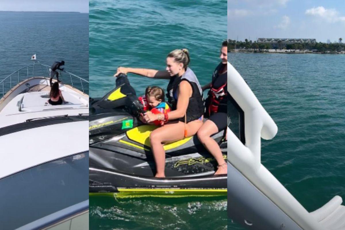 No luxuoso passeio de barco em que tinham direito a um escorregador que caia diretamente no mar, tapetes flutuantes e jetski, a família aproveitou o dia no passeio. Virginia também mostrou que as filhas aproveitaram muito, principalmente a mais velha, Maria Alice, de 1 ano, que fez um passeio de jetski, mas claro com boia de segurança, colete salva vidas e na companhia da mãe e de uma das babás.
