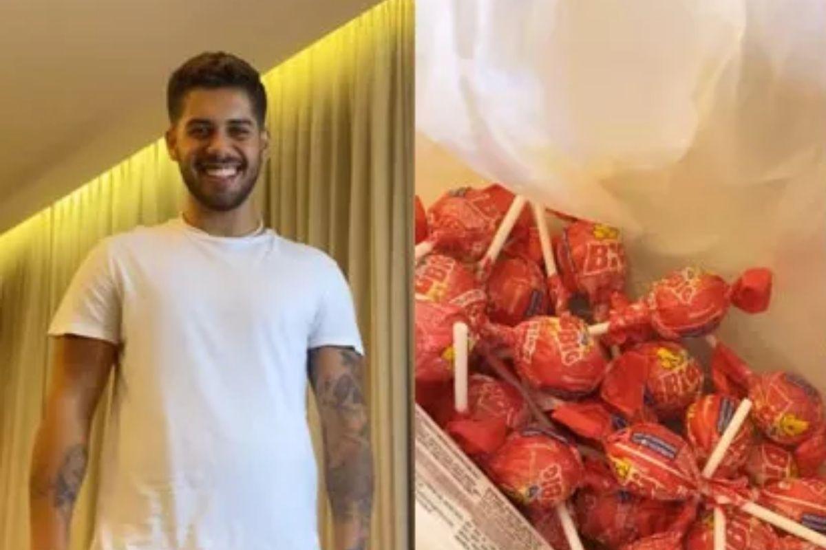 “Obrigada, Neneco”, agradeceu Virginia enquanto mostrava o saco cheio de balas e pirulitos entregue pelo sertanejo. “Muito amor e carinho para você”, respondeu Zé Felipe.”Vou me acabar! Esses pirulitos vão acabar até amanhã. Tem até remédio aqui também”, confessou a mãe de primeira viagem. “Depois de chupar 300 pirulitos, me deu sede”, brincou a Youtuber.