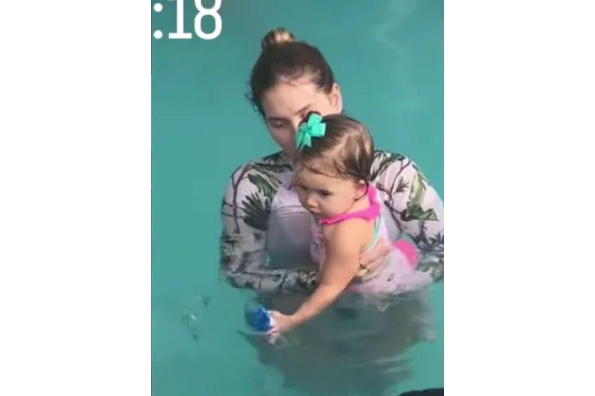 A mãe de Maria Alice e Maria Flor publicou nos Stories do Instagram um compilado de registros da filha na piscina da academia onde tem aulas. Com o cabelo preso e um maiô branco de manga comprida, Virginia aparece auxiliando a filha nas atividades. Atualmente Virginia está em seu sétimo mês de gestação, portanto, não falta muito para que Maria Flor venha ao mundo.