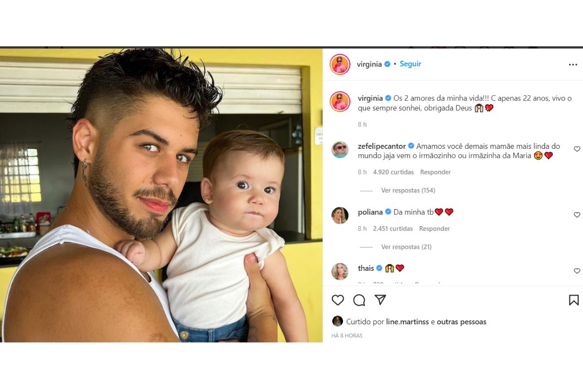 No dia 04 de janeiro, Zé Felipe deixou os fãs intrigados após publicar um comentário na publicação da companheira, Virginia Fonseca. O cantor deixou uma dúvida no ar ao revelar que, talvez em um futuro não tão distante, Maria Alice, de 7 meses, poderá ganhar um irmão.