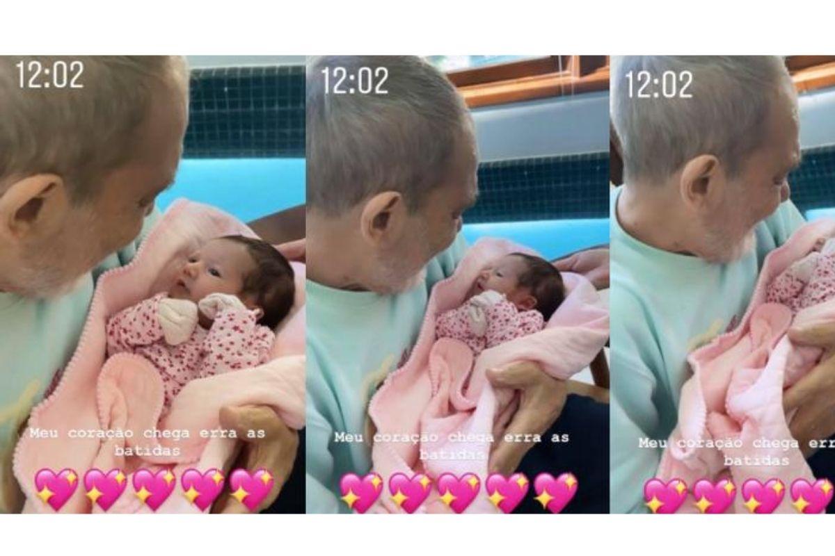 Nas imagens compartilhadas pela influenciadora nas redes sociais, a bebê aparece no colo do avô, em um momento de amor e carinho. “Meu coração chega erra as batidas”, se declarou Virginia ao compartilhar o momento.