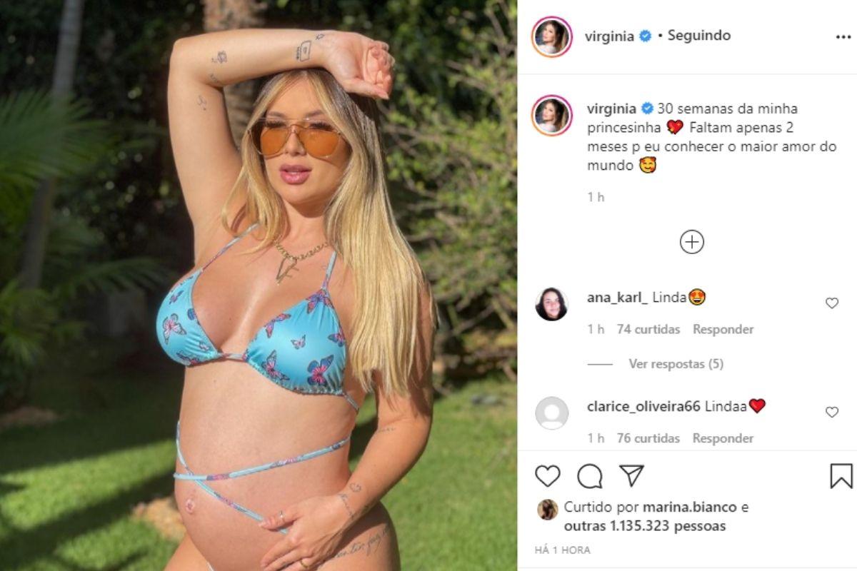 Durante o mês de março, Virginia Fonseca usou as redes sociais para compartilhar com os internautas uma foto em que aparece de biquíni. Na imagem é possível ver o tamanho da barriga da influenciadora, grávida de 7 meses da primeira filha, Maria Alice, fruto do relacionamento com Zé Felipe.
