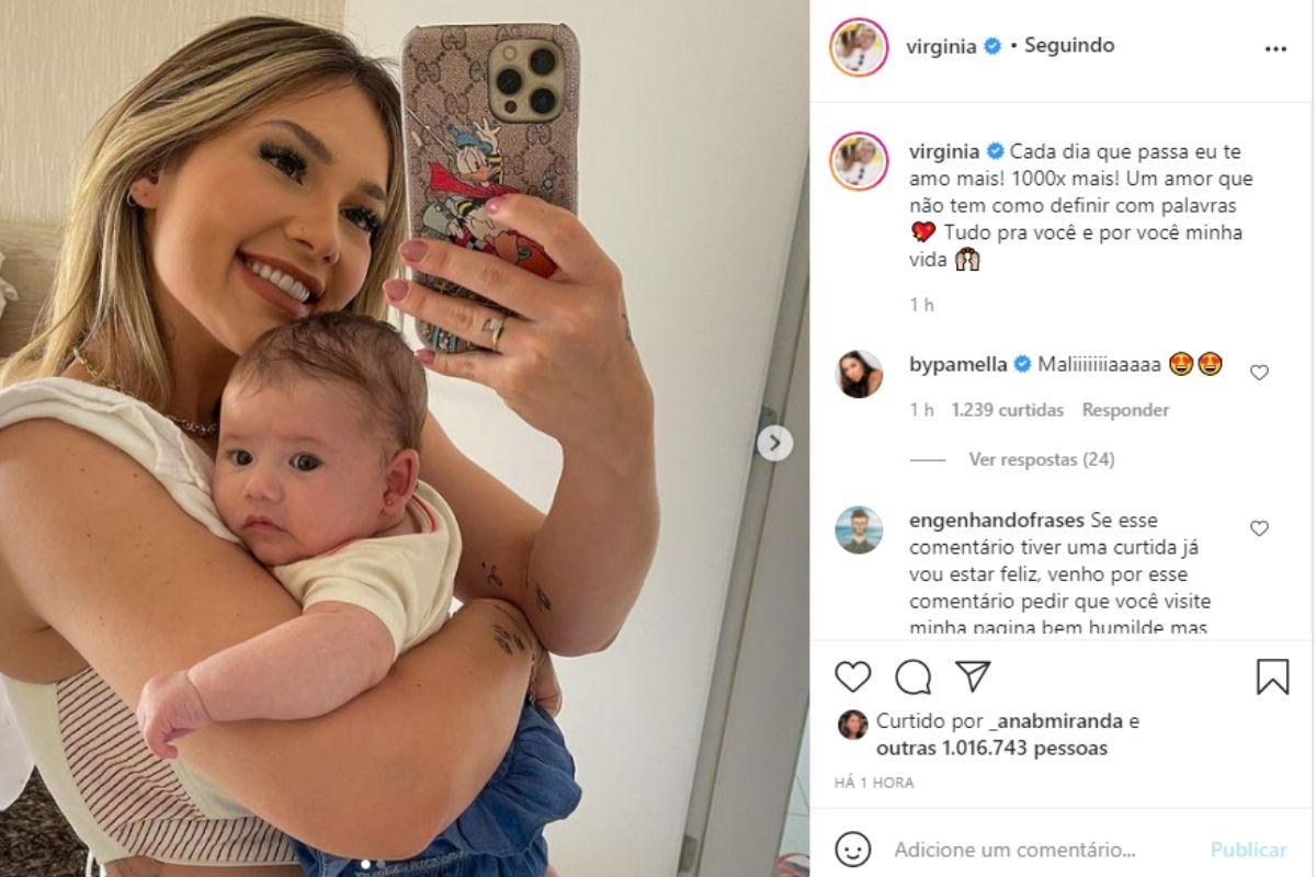 Virginia Fonseca usou as redes sociais nesta quinta-feira, 26 de agosto, para fazer uma declaração cheia de amor para a filha, Maria Alice, fruto do relacionamento com o cantor Zé Felipe. Junto com a homenagem, ela compartilhou algumas fotos da bebê.