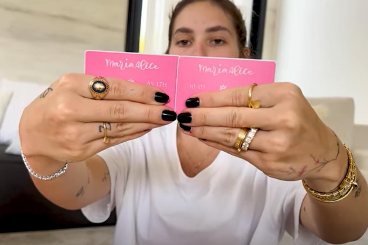 “A festa vai ser no dia 30 de maio, às 17 horas. Sem o convite individual não entra no local. O mundo da Tutti-frutti. E como é que funciona? Você puxa aqui e está escrito: ‘spray me’. E o cheiro é de Tutti-frutti. E aí aparece: Maria Alice faz um aninho, dia 30 de maio, às 17h. Olha isso! Que chique! No final está escrito: ‘indispensável a apresentação do cartão magnético e o passaporte de vacinação na entrada do evento’. Ficou muito lindo! Estou apaixonada por esse convite!”, conta a mãe, ao mostrar o convite. Veja o vídeo completo abaixo: