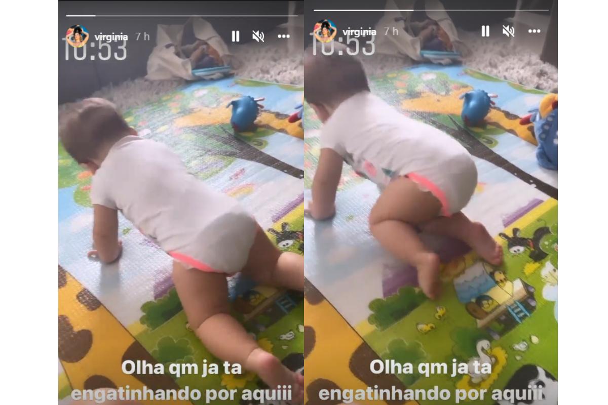 Foi através dos stories no Instagram que Virginia mostrou a nova conquista da filha. No registro, é possível assistir a criança utilizando as mãos e as pernas para se locomover sozinha. “Olha quem já ta engatinhando por aquiii”, comemorou a mãe de primeira viagem na legenda do vídeo.