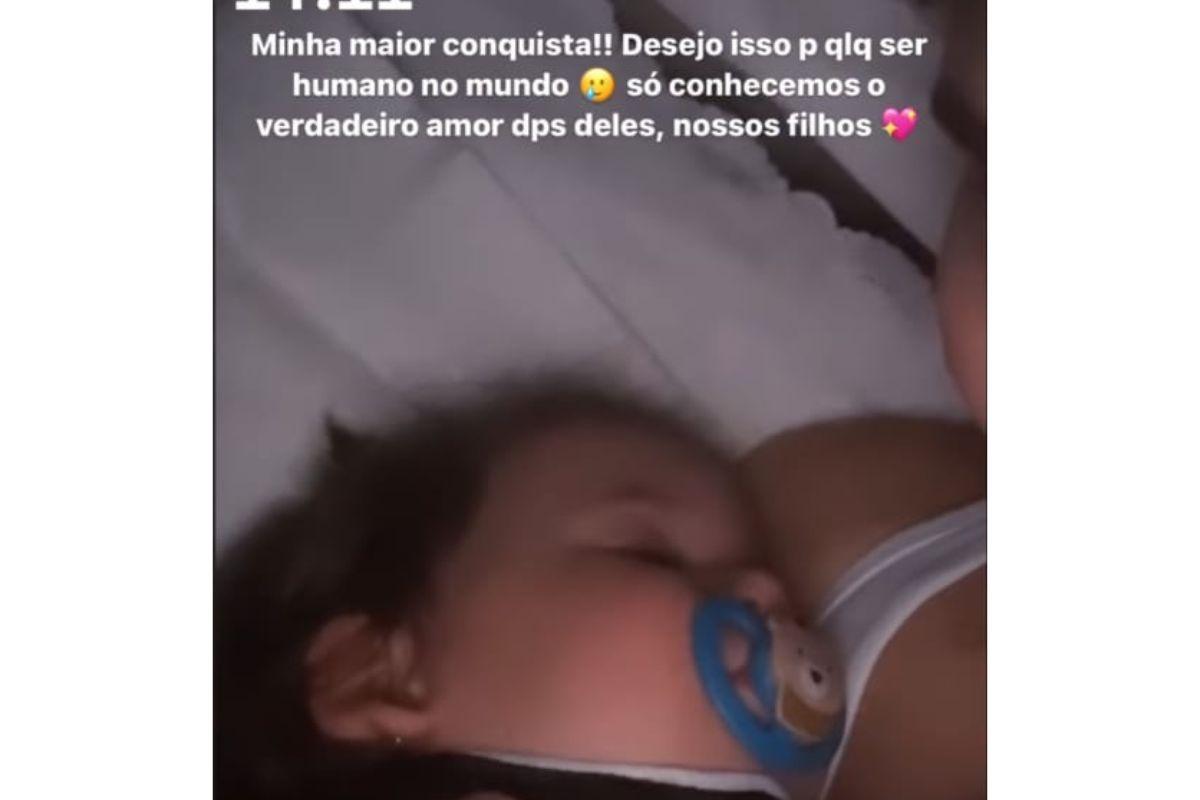 Ela começa dizendo que deseja essa sensação para todas as pessoas do mundo: “Minha maior conquista! Desejo isso para qualquer ser humano no mundo. Só conhecemos o verdadeiro amor depois deles, nosso filhos”. Em seguida, ela completa: “Não lembro da minha vida antes dela”.