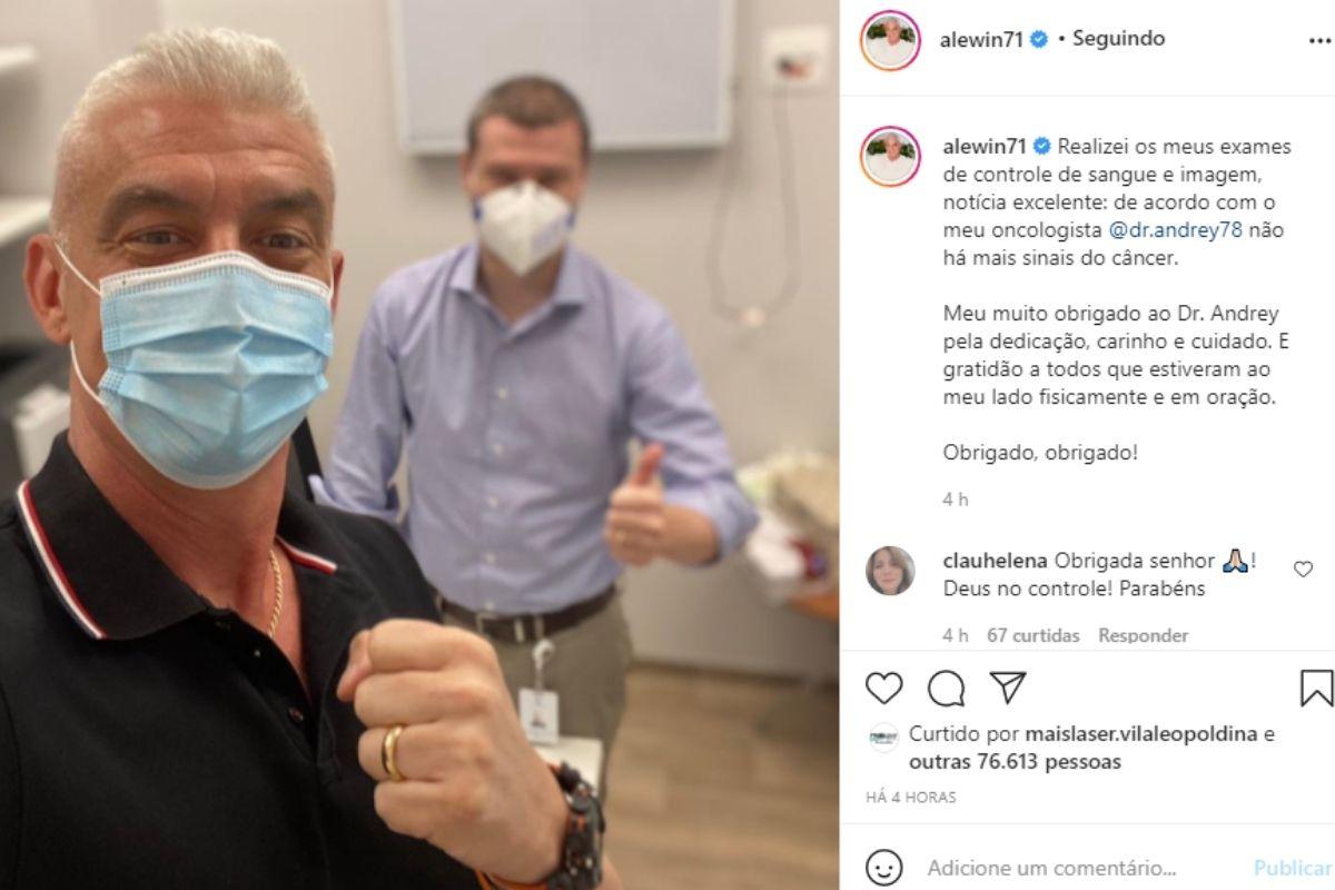 Alexandre aproveitou a publicação para contar um pouco sobre o estado de saúde e agradecer a todos que estiveram com ele. “Realizei os meus exames de controle de sangue e imagem, notícia excelente: de acordo com o meu oncologista não há mais sinais do câncer”, começou ele, contando.