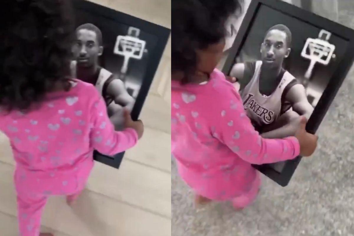 Viúva de Kobe Bryant mostra filha de 1 ano segurando uma foto do atleta: “Papai” (Foto: reprodução Twitter)