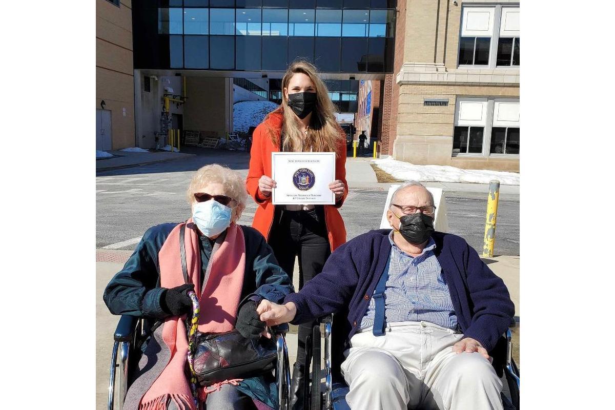 A Senadora Michelle Hinchey presenciou a vacinação do casal e comemorou em publicação no Facebook