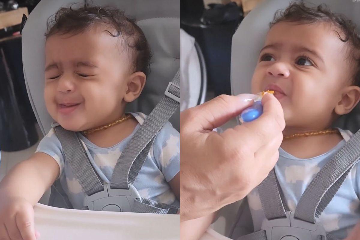 Nesta quarta-feira, 8 de março, a atriz usou seu perfil na rede social Instagram para publicar um vídeo inédito de seu filho adotando a introdução alimentar e provando a primeira papinha. Pelas reações engraçadas do filho, a mãe de primeira viagem divertiu os seguidores, já que o bebê não aparentava ter gostado tanto da comida.