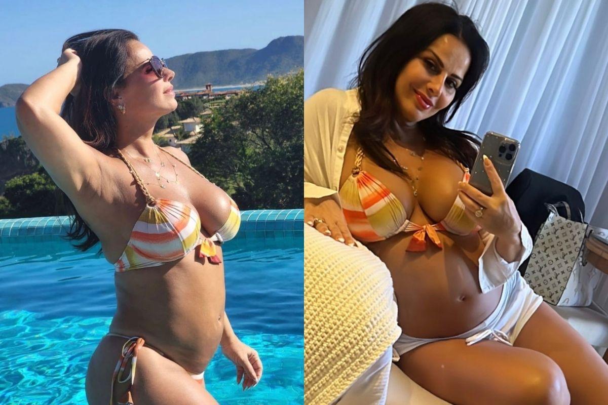 A musa do carnaval compartilhou um momento de biquíni e a primeira coisa que os internautas repararam foi o tamanho da barriga da atriz. Na legenda, Viviane escreveu: “Curtindo mais um dia nesse lugar delicioso!”. Viviane está viajando com o marido.