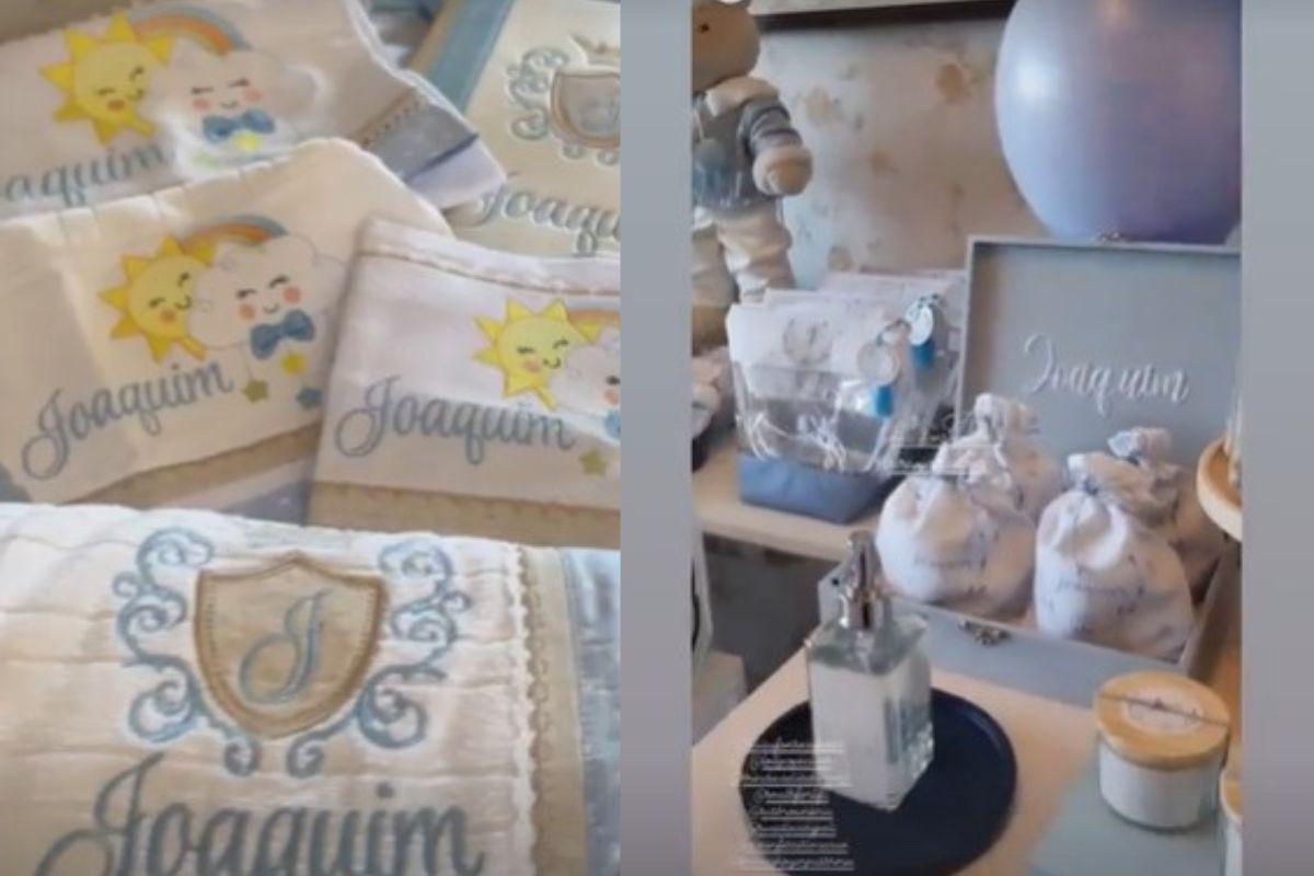 Viviane Araújo, ainda em recuperação, mostra como está a decoração do quarto da maternidade para a recepção do seu primeiro filho, o Joaquim. Nos stories de seu Instagram, a artista mostra cada detalhe. Nas imagens, o quarto aparece todo decorado em tons de azul, com mimos, docinhos e lembrancinhas com o nome do bebê. Tem ainda ursinhos de pelúcia e uma álcool em gel para quem for visitar a nova família na maternidade.