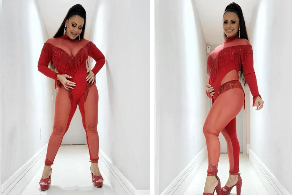 No Instagram, ela brincou que iria levar o filho para sambar esse ano e fez um trocadilho chamando os internautas para cair no samba também! “Vamos sambar um pouquinho meu filho???”, escreveu ela, ao compartilhar uma série de fotos em que aparece com um macacão vermelho com detalhes em transparência.