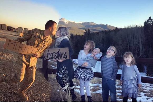 Ashley Sistrunk estava determinada a fazer um cartão de Natal com a foto da família dela reunida, mesmo sabendo que isso fosse envolver algumas dificuldades. Além de ter quatro filhos, o marido dela, Brandon, está bem longe de casa, já que é militar e foi convocado para a guerra.