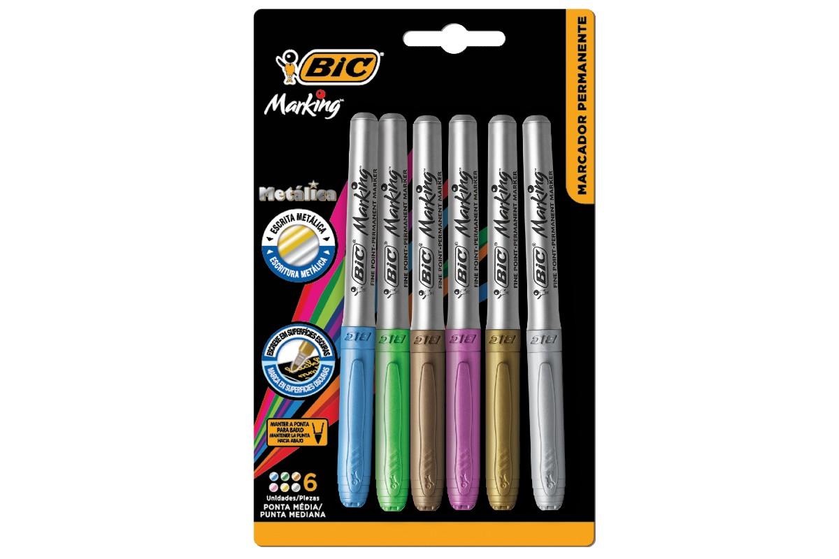 Agora os marcadores permanentes na versão metálica, têm novas cores: azul, verde, marrom e rosa! O kit contém 6 unidades, incluindo os já conhecidos dourado e prateado. Eles podem ser usados em superfícies escuras e são ideais para trabalhos manuais, artesanato e hobby.