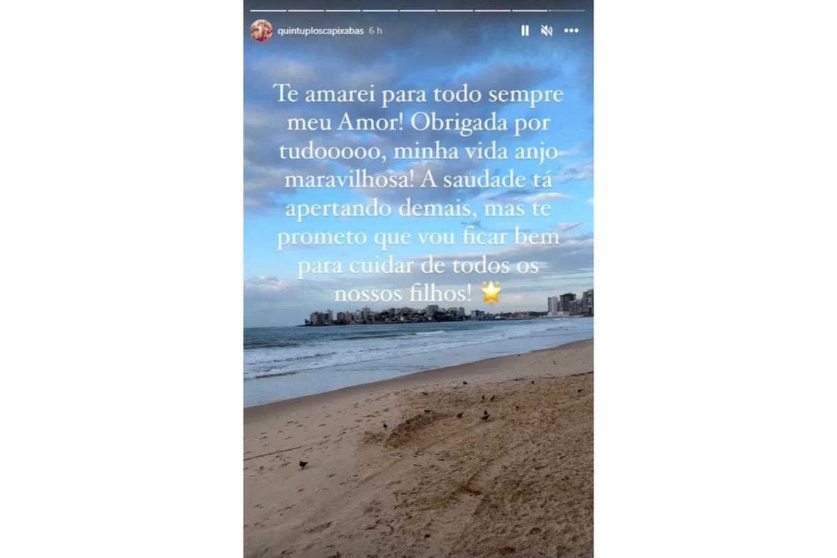 “Te amarei para todo sempre, meu amor. Obrigada por tudo, minha vida. A saudade tá apertando demais, mas te prometo que vou ficar bem para cuidar de todos os nossos filhos”, disse a publicação da viúva.
