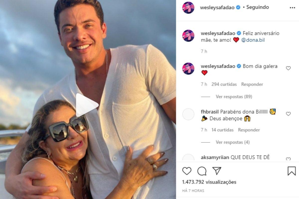 Dia de comemorar! Dona Bil, mãe do cantor Wesley Safadão faz aniversário nesta quinta-feira, 18 de fevereiro. O famoso aproveitou a data para celebrar a vida da mãe com uma linda publicação nas redes sociais. Por meio do Instagra, ele publicou um vídeo com momentos ao lado dela. “Feliz aniversário mãe, te amo! @dona.bil”, escreveu ele ao mostrar a homenagem.
