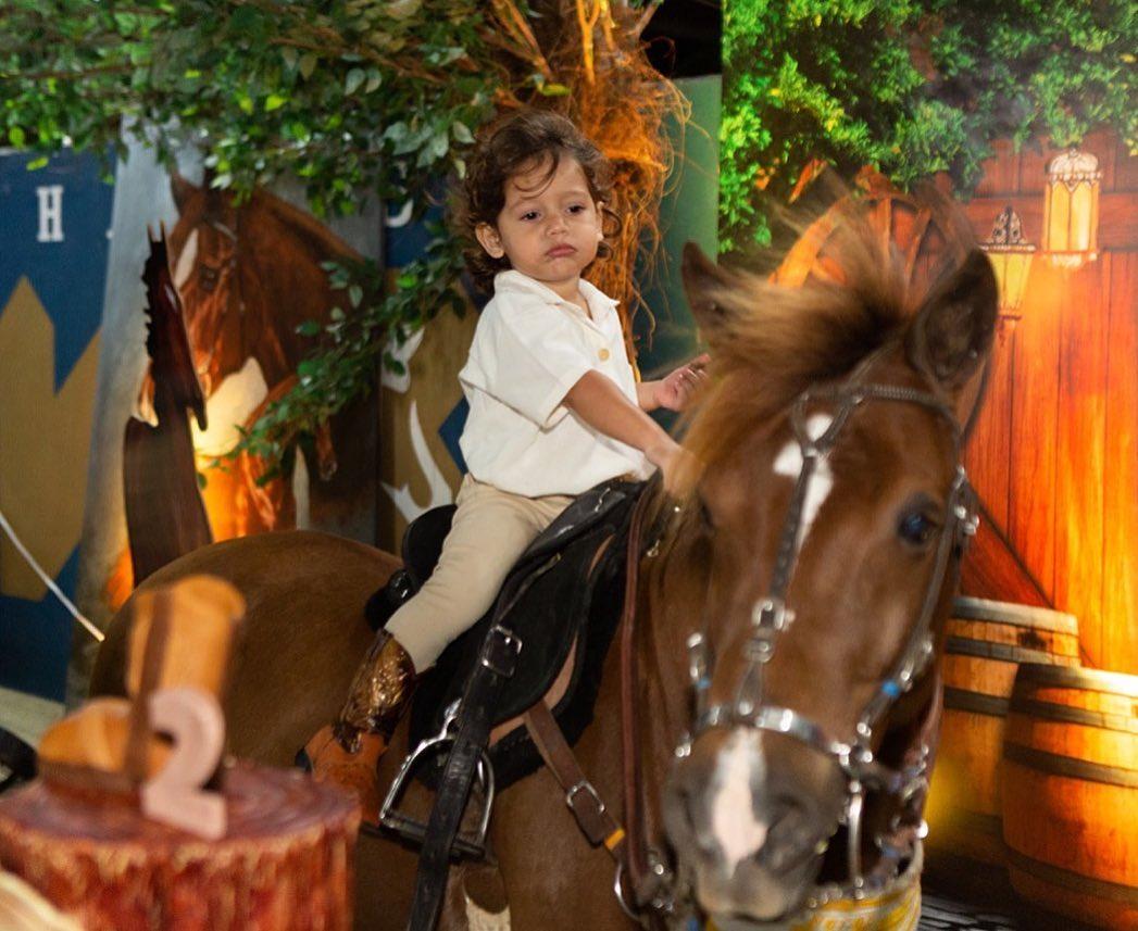 Alguns Stories publicados pela família mostraram Dom se divertindo ao andar de cavalo e, em seguida, a hora do parabéns, que reuniu alguns familiares e amigos ao redor do bolo.
