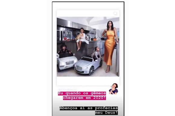 A mãe de Yhudy falou do desejo de uma forma muito engraçada e leve: ela publicou uma foto da socialite, Kim Kardashian, com os três filhos para a Vogue e disse: “Eu quando os gêmeos chegarem em 2020! Abençoa aí as profecias meu Deus.”