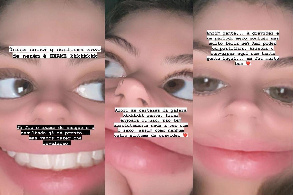 Maria Lina usou as redes sociais na última semana para brincar sobre a relação entre o gênero do filho e os enjoos que anda sentindo nos últimos meses. “Olha vocês me deixando bem loka [sic]”, disse ela. “Adoro as certezas da galera [risos]. Gente, ficar enjoada ou não, não tem absolutamente nada a ver com o sexo, assim como nenhum outro sintoma da gravidez. Única coisa que confirma sexo de neném é exame”, completou.