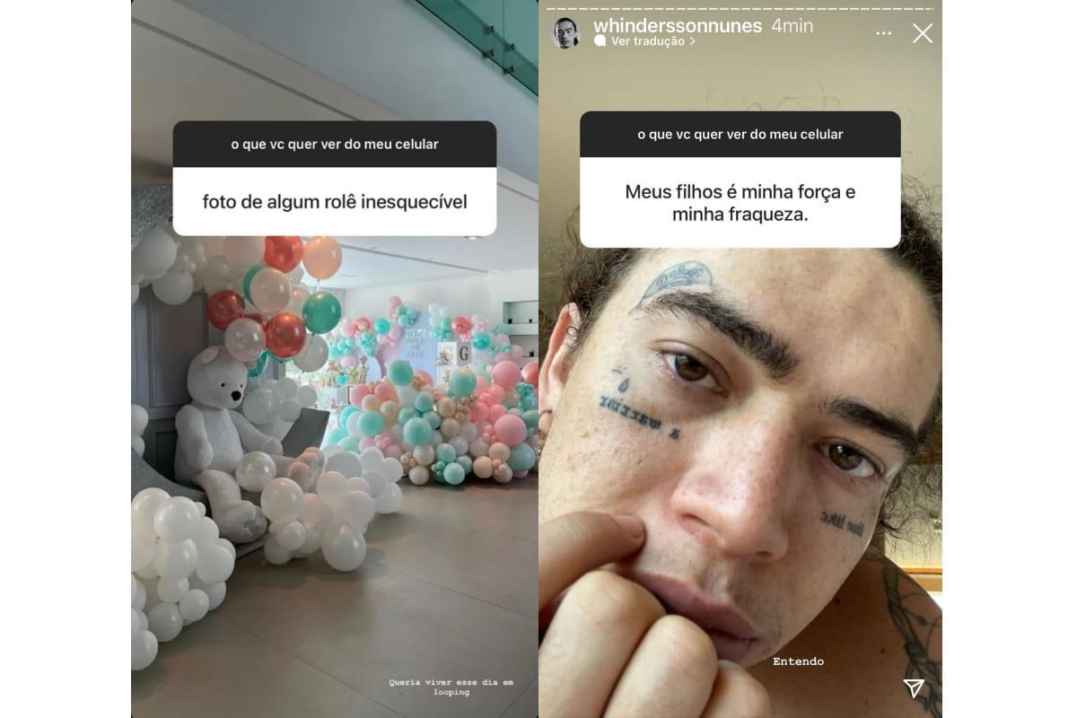 Foi através dos stories que o artista compartilhou novamente o momento especial em sua vida. Whindersson abriu uma caixinha de perguntas no perfil pessoal do Instagram para interagir com os seguidores. Um fã aproveitou a oportunidade e pediu para que ele publicasse uma imagem que tinha em seu celular de algo marcante em sua vida. “Um rolê marcante”, escreveu o internauta.