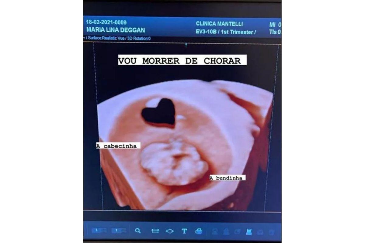 Grávida de dois meses, Maria Lina tem registrado momentos especiais da gestação nas redes sociais. Recentemente, a estudante de engenharia compartilhou com os seguidores as imagens do primeiro ultrassom do bebê, contando que ficou emocionada com a cena e que não conseguia parar de chorar. Na foto, é possível ver o bebê em posição fetal na tela do exame. “A cabecinha, a bundinha”, escreveu a futura mãe na publicação.