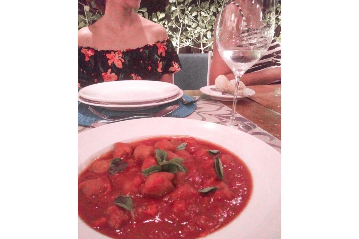 Na Vila da Praia, você pode passear muito e curtir uma boa música no período da noite. Com três restaurantes a la carte, as mães podem aproveitar para se divertir, porque afinal, mãe também é gente, certo?! Em um dos bares, aproveitamos para espiar o que estava acontecendo e ficamos apaixonados por uma super apresentação de Salsa! Para fechar um dos dias com chave de ouro, visitamos o restaurante Benditos Frutos, especializado em frutos do mar, mas para quem é vegetariano, pode se deliciar nesse nhoque ao molho sugo que a gente experimentou e claro, outras delícias da casa. Estava maravilhoso!
