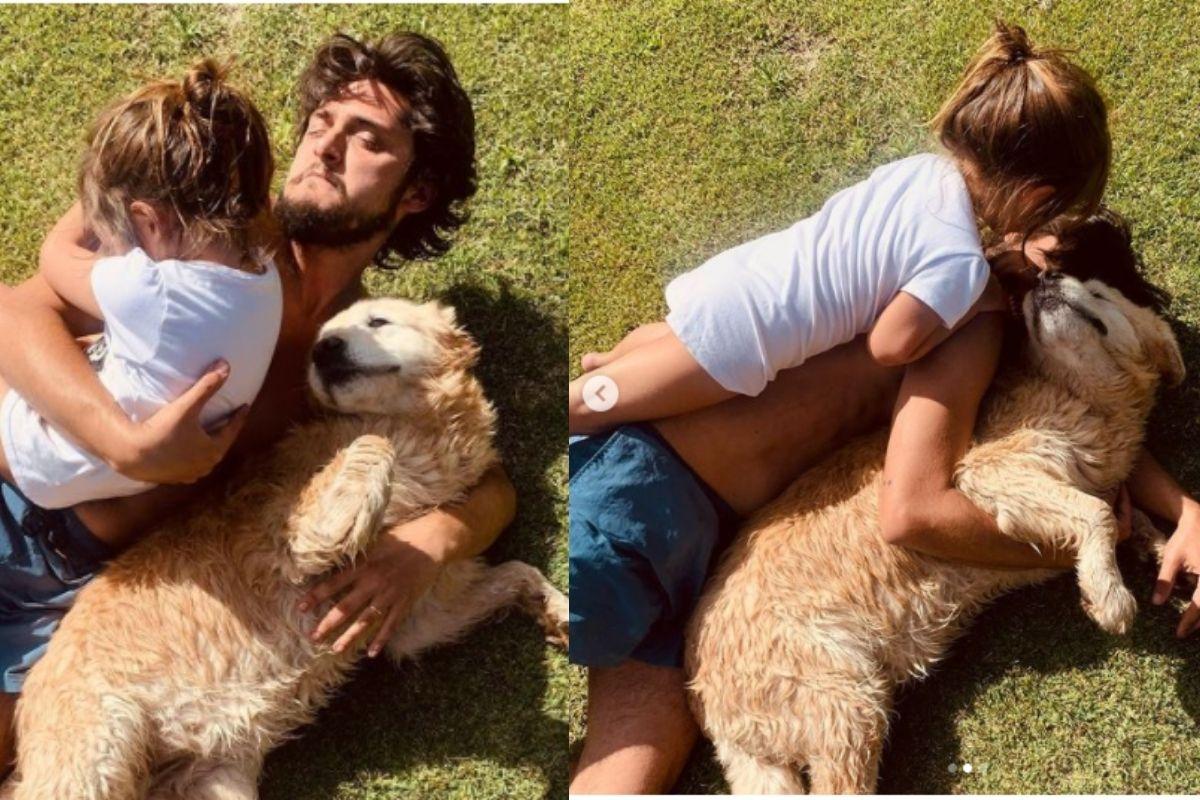 Nas imagens, pai e filha aparecem rolando na grama com o cachorro da família enquanto dão risada e se divertem. “A bagunça que a gente gosta”, escreveu ela na legenda da publicação.
