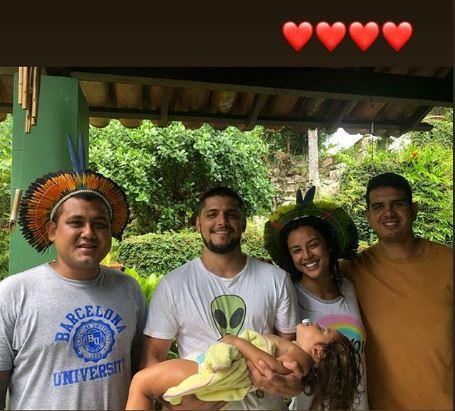 Em seus Stories do Instagram, a atriz postou fotos de uma trilha até uma aldeia indígena.