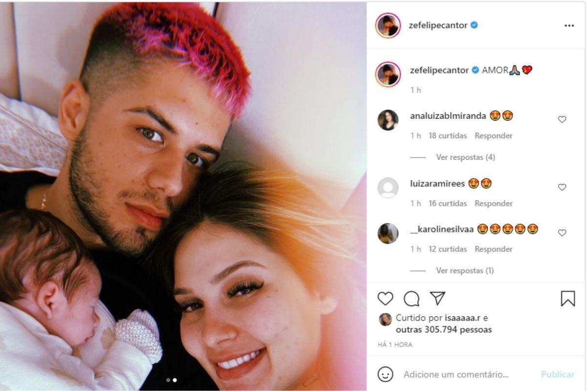 Zé Felipe usou as redes sociais nesta segunda-feira, 14 de junho, para compartilhar uma foto cheia de amor ao lado da esposa, Virginia Fonseca e da filha, Maria Alice. Nas fotos, publicadas no Instagram, os três aparecem deitados juntos. “Amor”, escreveu ele ao compartilhar as imagens.