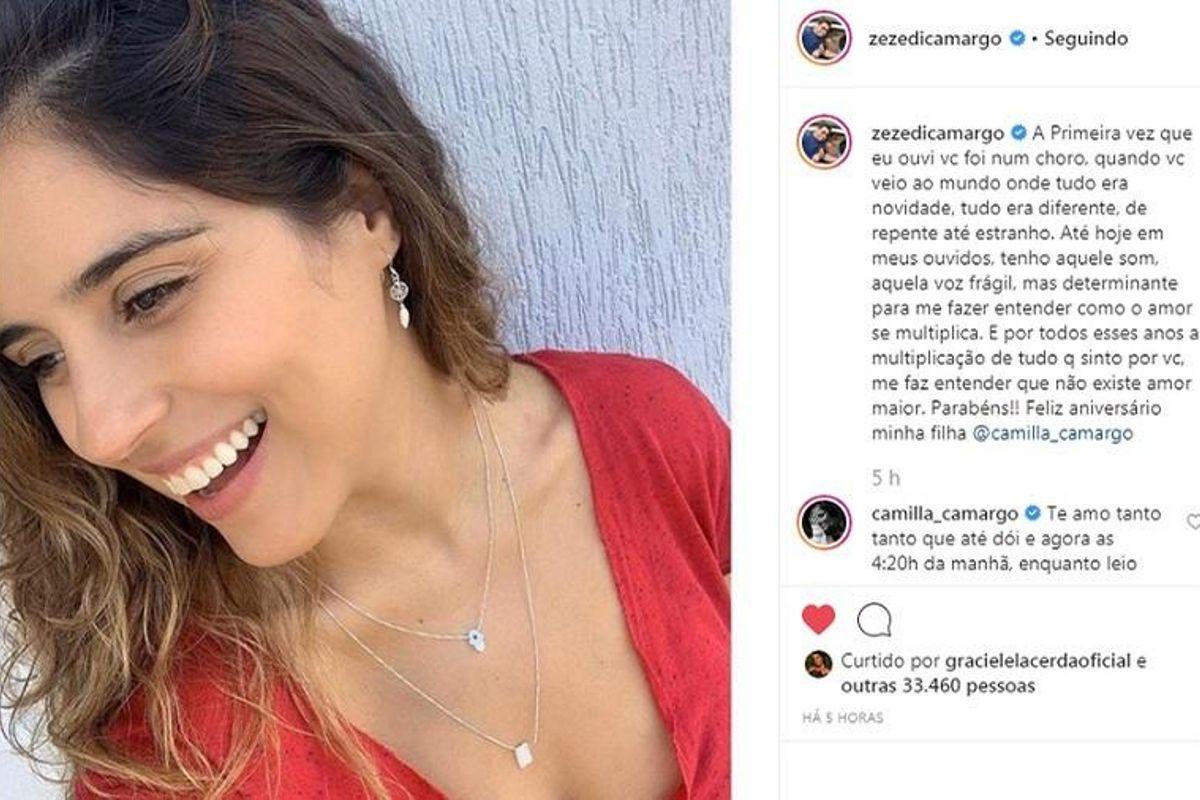 Camilla Camargo, filha de Zezé Di Camargo e Zilu Godoy, completou mais um ano de vida e o pai dela mostrou que não importa quantos anos os filhos façam, eles serão eternas crianças protegidas. O cantor, inclusive, usou as redes sociais para fazer uma baita homenagem.