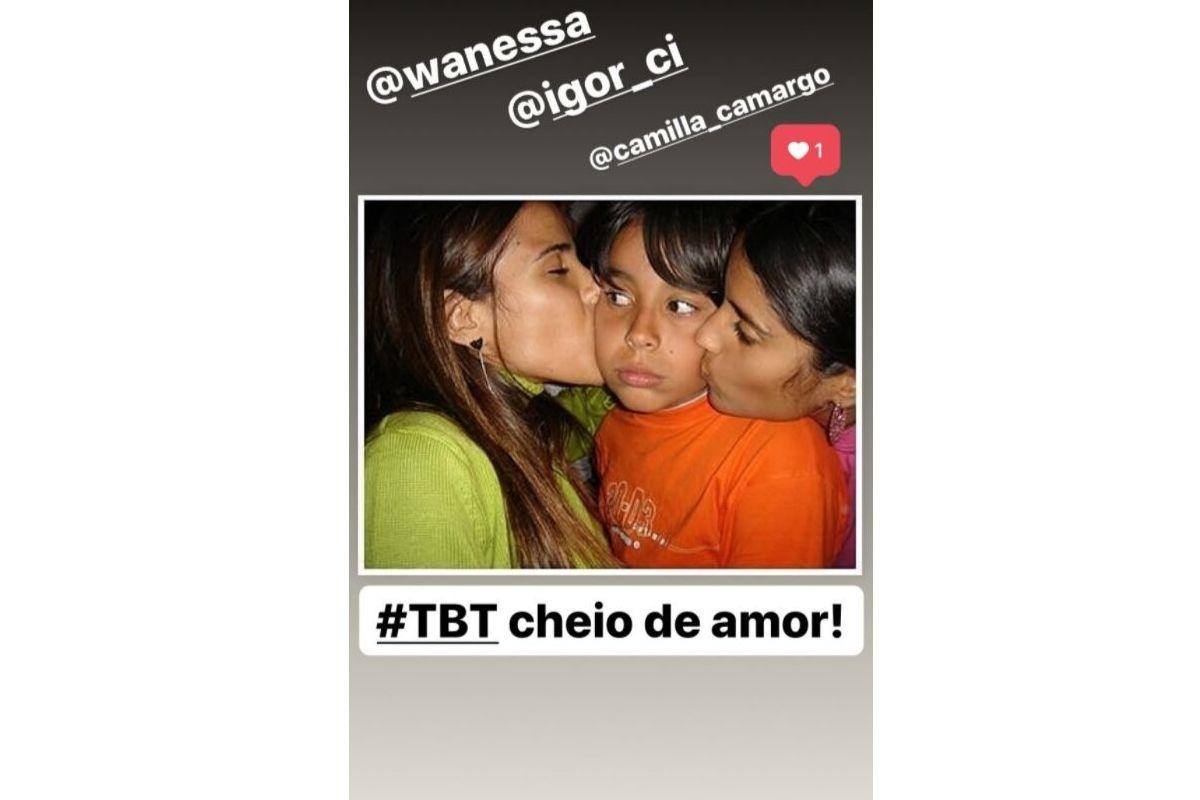 Na publicação, ela marcou os filhos Wanessa, Camilla e Igor. Os três estão reunidos da foto, que mostra um momento descontraído e de carinho dos irmãos. “#TBT Cheio de amor”, declarou a empresária.