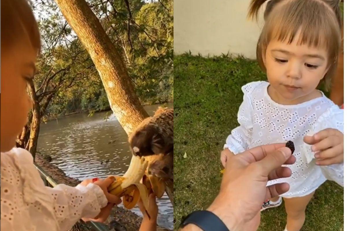 Mesmo vaidosa Zoe mostrou que ama a natureza e principalmente os animais! A menina se divertiu em passeio com os pais, onde teve a oportunidade de dar bananas para os macacos, alimentar patos e até colher amoras direto do pé!