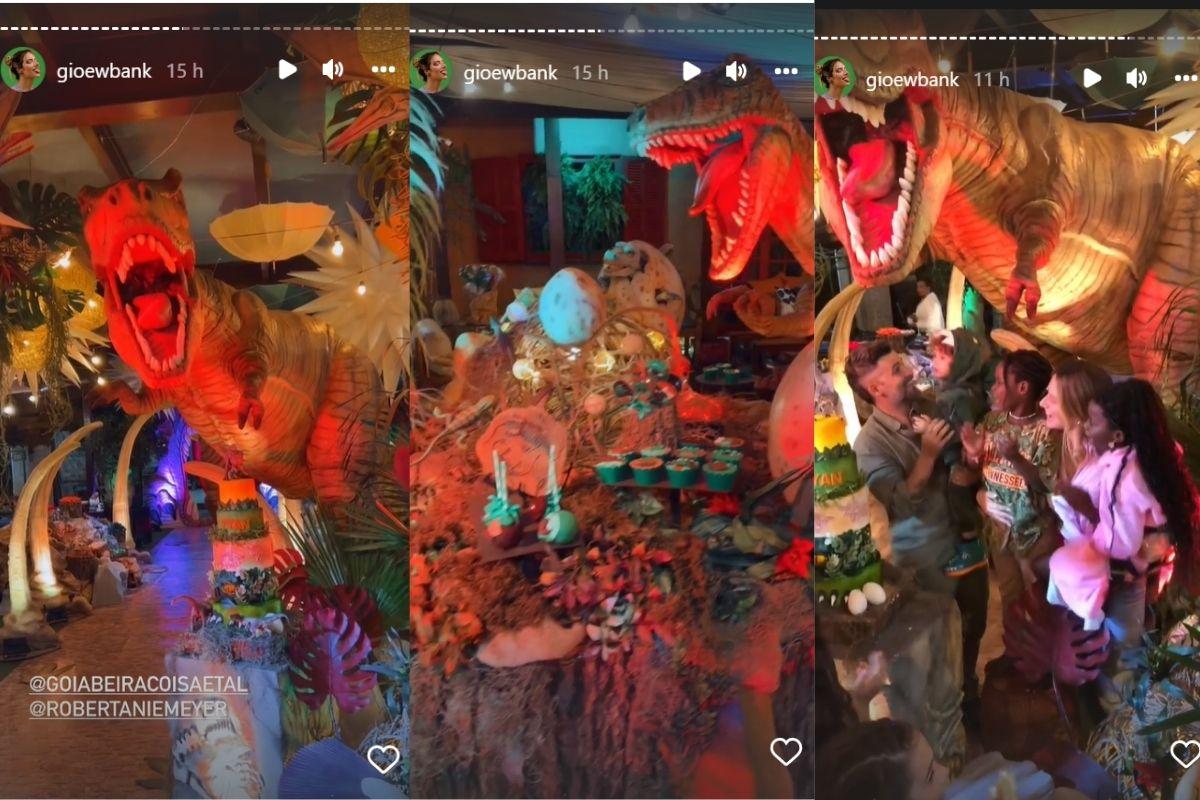 Pelos stories do Instagram, Giovanna Ewbank mostrou a decoração escolhida para a comemoração de dois anos de Zyan. Toda inspirada em dinossauros, a festa contou com os vários animais enormes, muitas plantas e uma paleta de cores nos tons de verde e marrom – assim como o look do aniversariante.