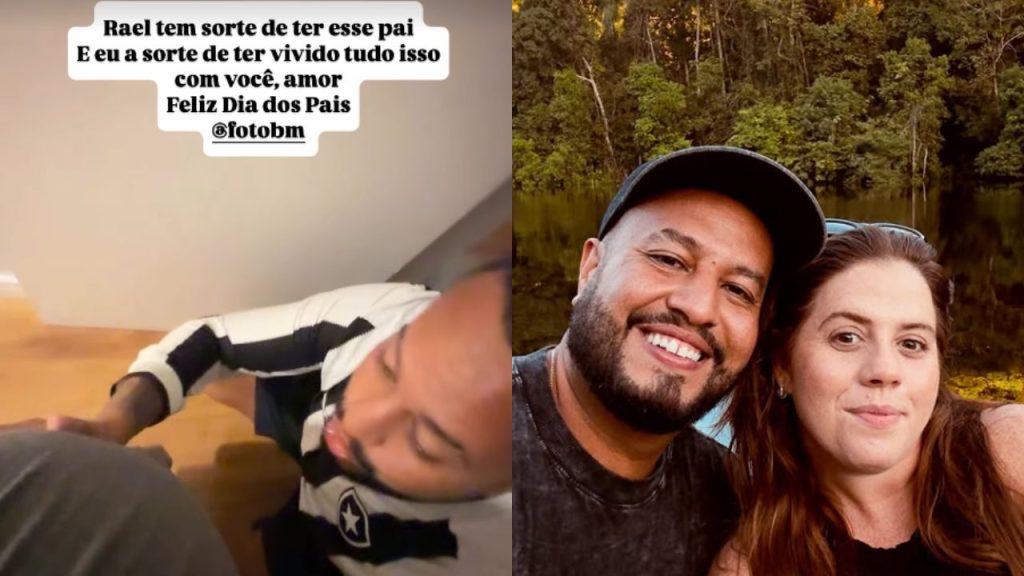 “Rael tem sorte de ter esse pai. E eu a sorte de ter vivido tudo isso com você, amor. Feliz Dia dos Pais. Nossos papos, nossas zoeiras e nosso amor. Te escolheria todos os dias. TODOS! Te amo”.